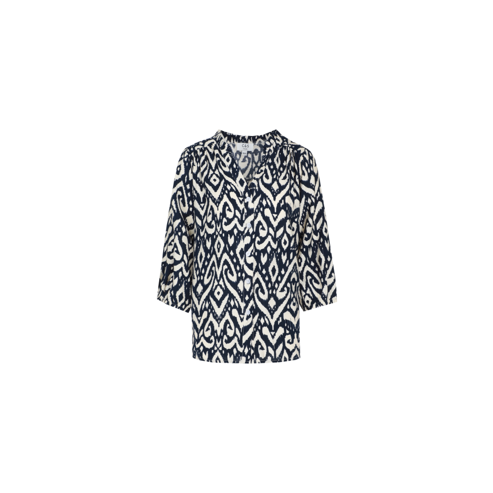 The Emelia blouse from C&S the Label has a graphic print that is both chic and cool. The subtle, half-length puff sleeves give the blouse an elegant character. The blouse has a V-neck and is provided with a button closure and has a loose fit.