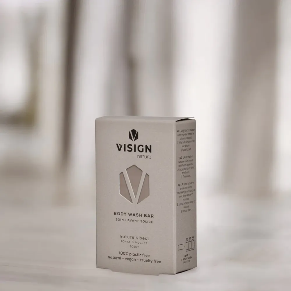 Opt for a sustainable shower with the 100% natural en nourishing Visign Nature Body Wash Bar. The solid bar gently cleanses skin while the ingredients like shea butter, argan oil, vitamin E and aloe vera nourish and moistures. After use, store the bar easily and hygienically in our Solid Bar Bag or onto the Magnetic Holder.