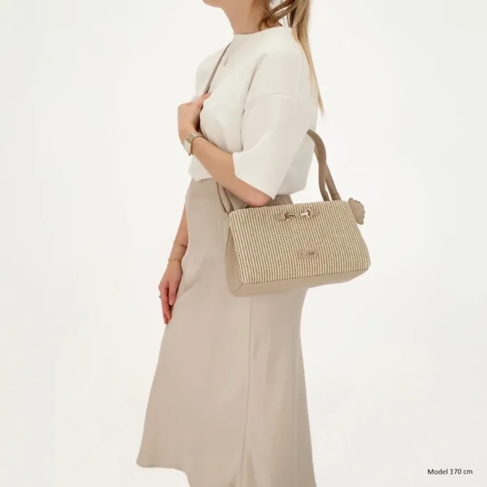The Charm London Santorini Shoulder Bag is a stylish bag with a summery wicker look and a practical layout. The bag closes with a zipper so you can store your belongings securely and everything stays neatly in place.