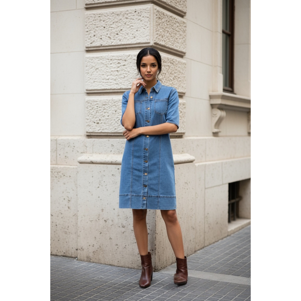 The Vicky denim dress from Ivy Beau is one of those pieces that always works. The soft stretch denim moves with you, and the button-through design makes it extra easy to wear. With its fresh blue colour and above-the-knee length, it’s the perfect addition to your Spring wardrobe.