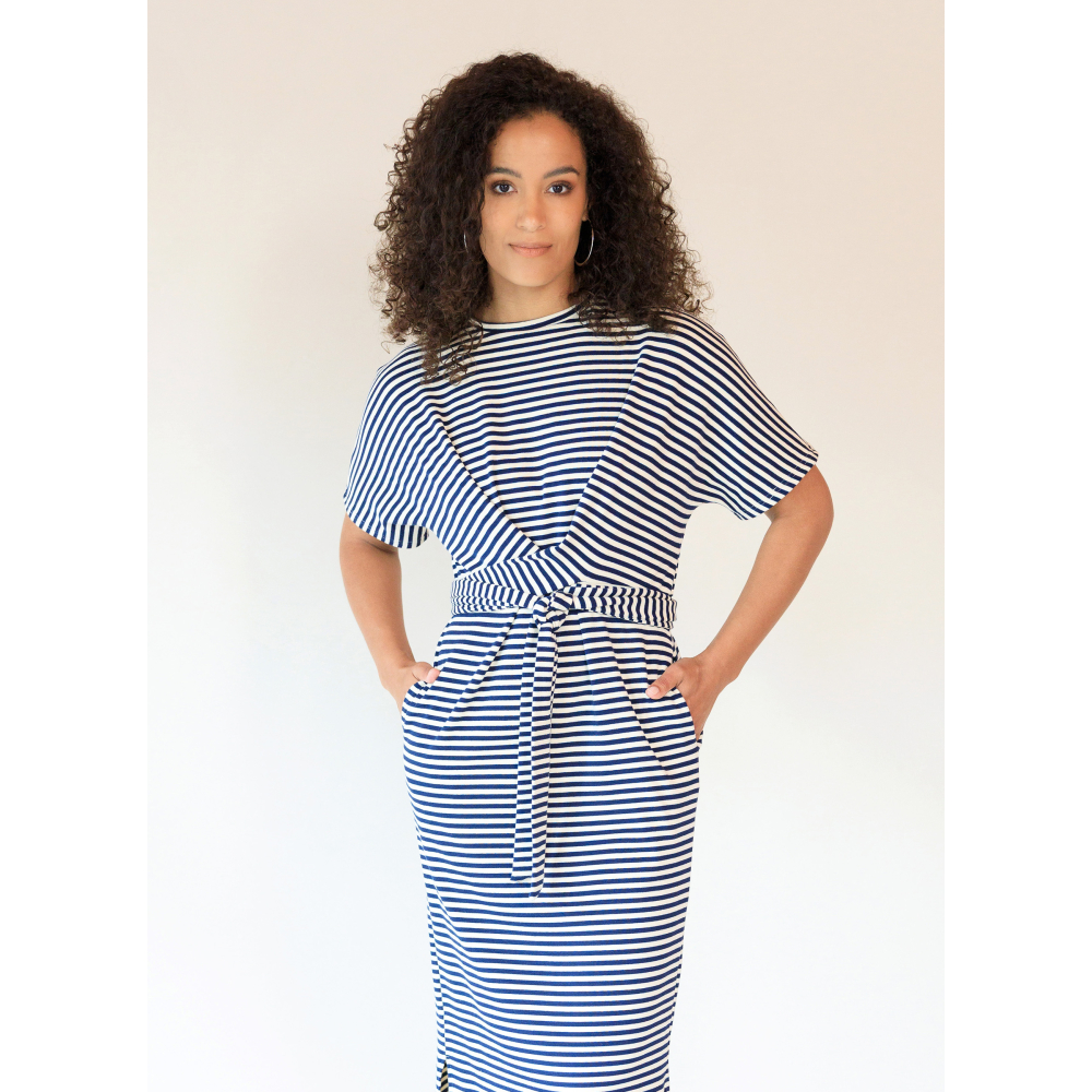 Stripes and comfort – the perfect combination! The Vivi dress from Ivy Beau is made from a slightly heavier, soft jersey fabric and drapes beautifully thanks to the tie belt. With side pockets and short batwing sleeves, it’s your go-to dress for a fresh, flattering spring look.