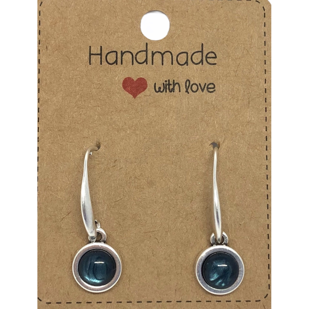 Earrings DQ Metal & Cabochon Small Dark Blue