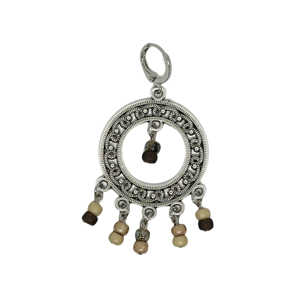 Earrings DQ Metal & Silver Ibiza Charm with Brown Beads