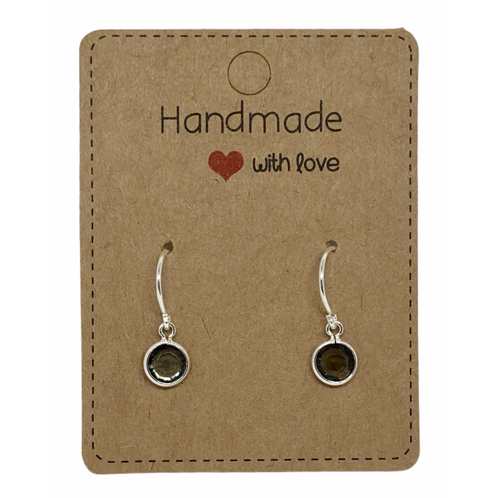 Earrings Small Silver & Crystal Charm Grey