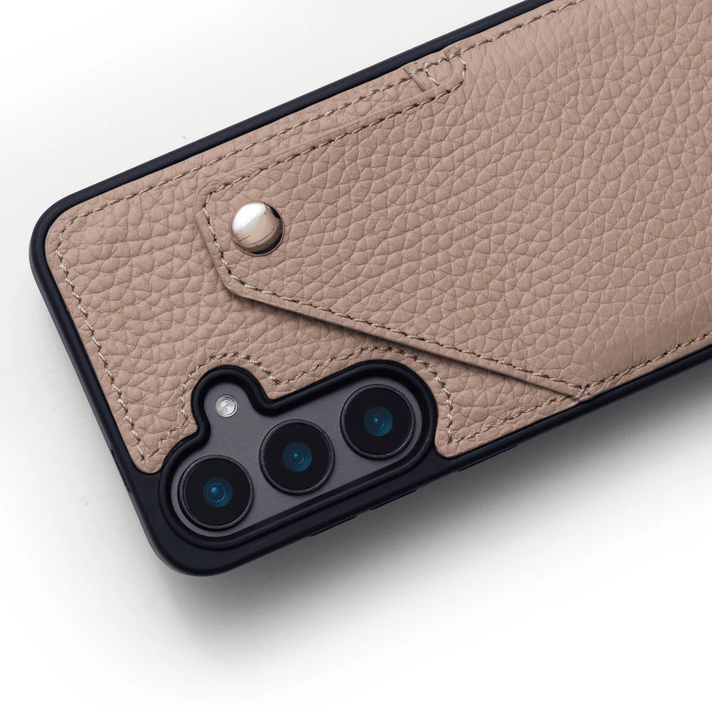 Your phone is your new fashion item! Protect your Samsung and complete your look with a Dutchies phone case! All our phone cases are handmade and made of high-quality leather combined with a gold finish and two clips to attach a matching Dutchies strap. There is room for approximately three bank cards on the back of the case.
