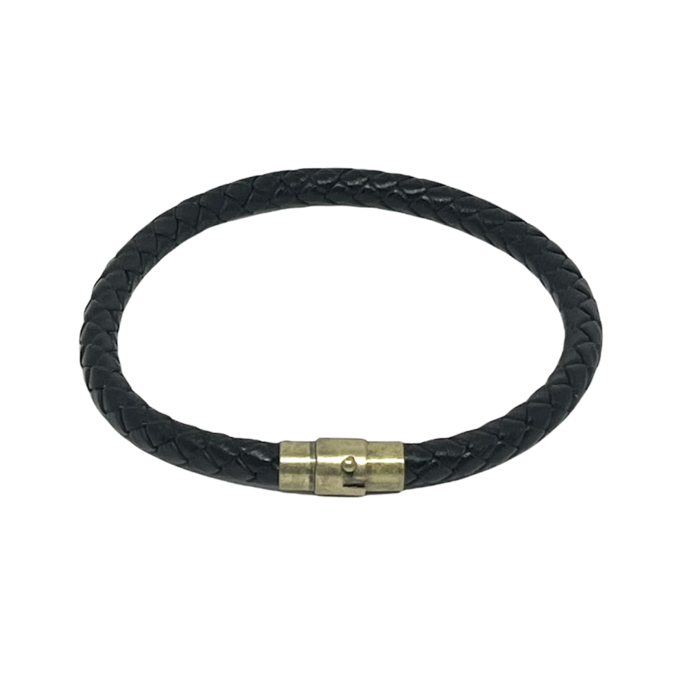 Leather Small Men Bracelet Round Black & Bronze
