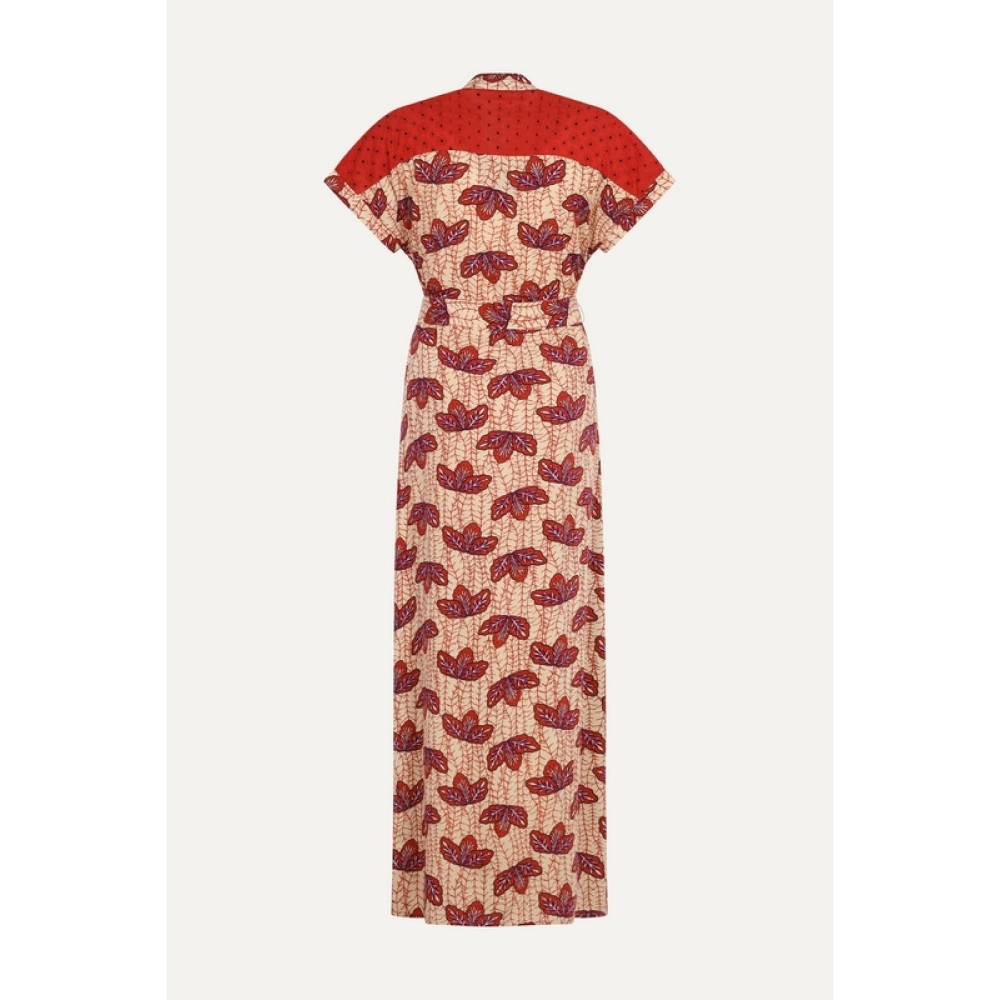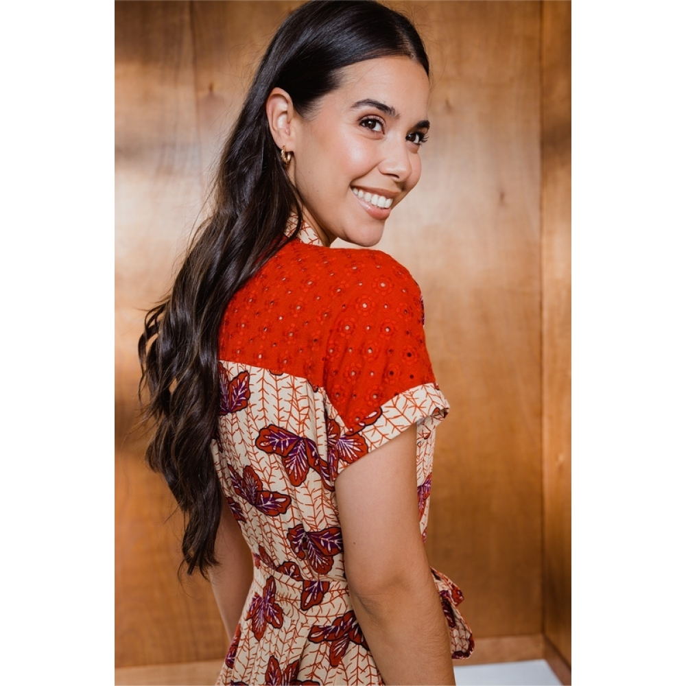 ● Round neckline with button closure and embroidery detail on shoulder/back