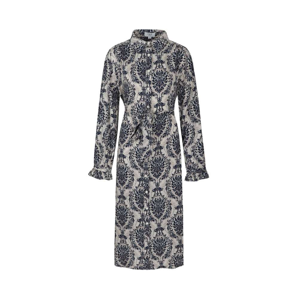 The Valor Dress from C&S the Label has a playful print and an elegant look. The dress comes with a belt to accentuate your waist. The dress has a button closure and a classic collar. The flared cuffs give your look a feminine touch.