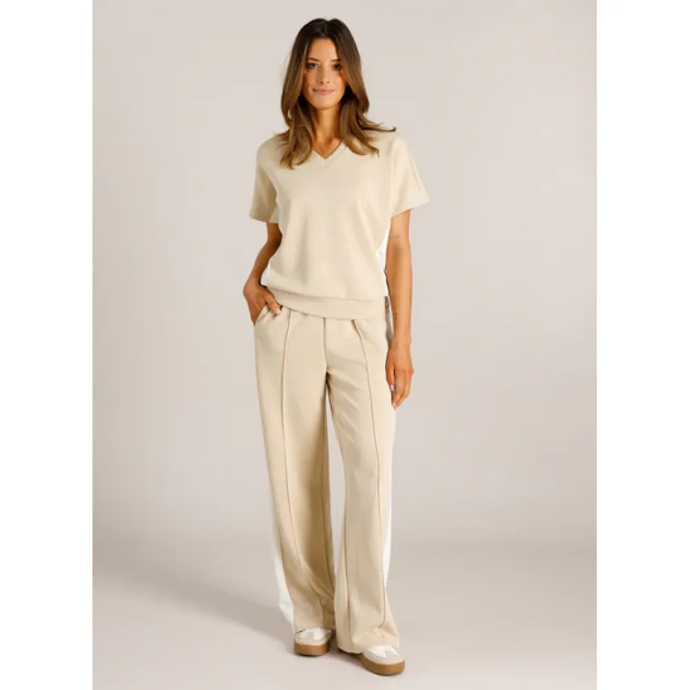 Soft, smooth and sporty! The Vitalia trousers from Ivy Beau in sand feature handy side pockets and an off-white contrast stripe along the side seam. Made from a wonderfully soft modal blend with wide legs for a relaxed fit. Pair them with the Vyenna sweater for a comfy, stylish set.