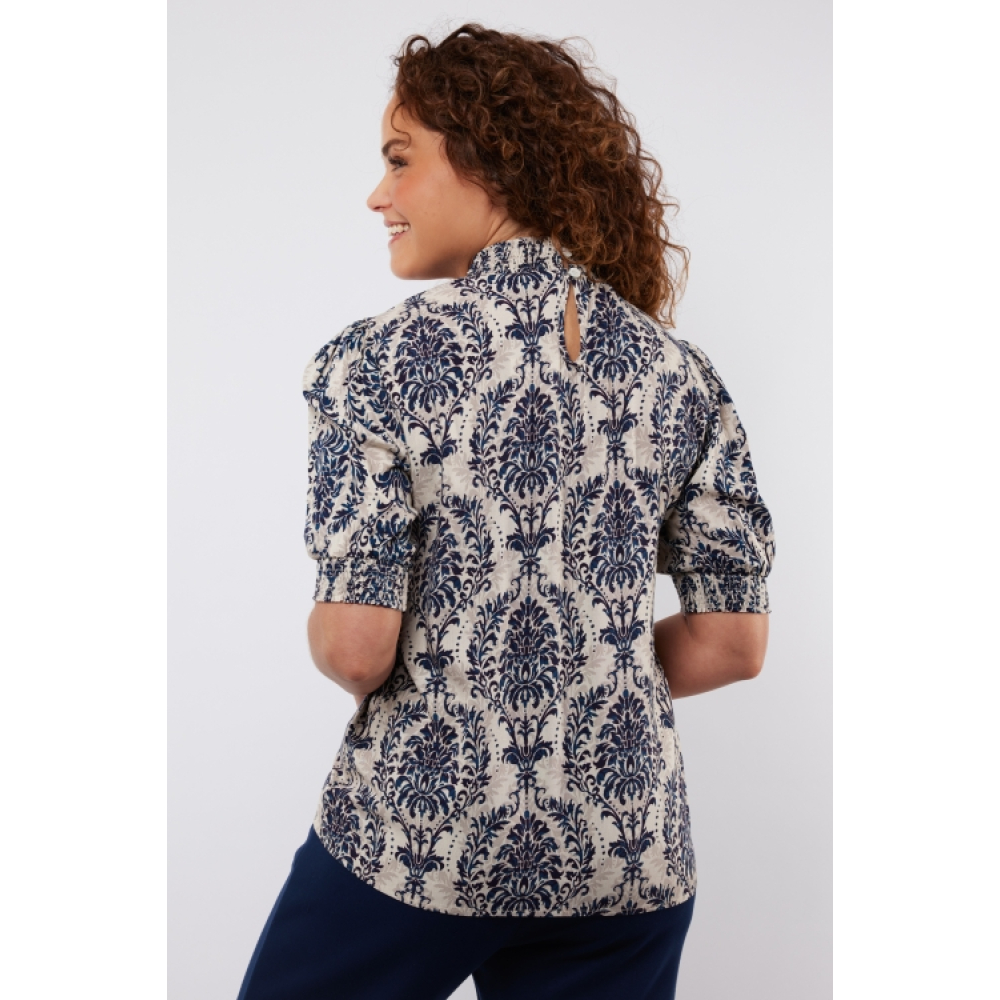 The Ace top from C&S the Label has a unique design and a comfortable fit. The top has half-length sleeves and a button closure. The top has subtle puff sleeves and a tight fit. Combine the top with wide-leg jeans for an everyday look.