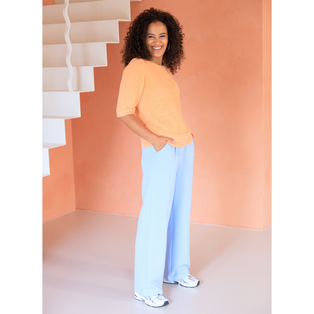 The Vica sweater from Ivy Beau is pure softness! Made from a cuddly, fluffy fabric with half-length sleeves and a round neckline. The peach colour adds a fresh spring vibe – perfect for days when comfort and style come together. A true favourite from the Ivy Beau Spring collection.